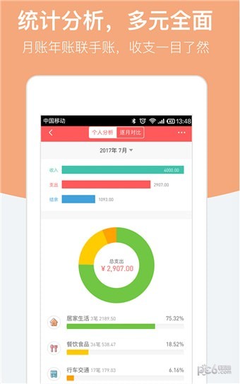 5、统计分析,多元全面:月账年账联手账,收支一目了然