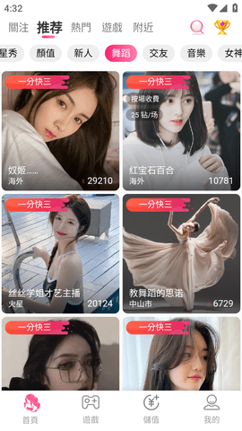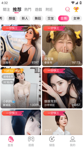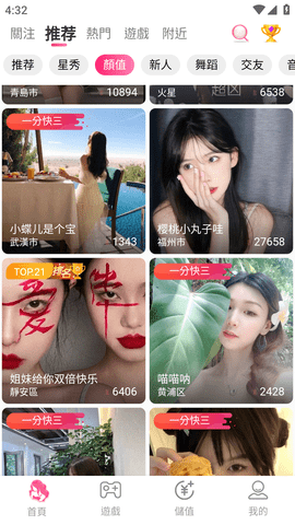 1.平台上有各种精彩的互动游戏,还可以和主播一对一的视频聊天。