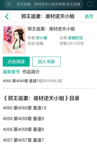 2.每本小说书籍的章节目录你都可以自定义挑选阅读,上次看到哪一章节你都可以找到。