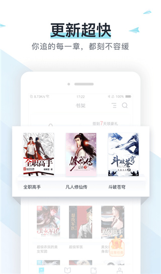 4.云书架:小说、电子书、图书、阅读进度自动云同步。