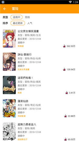 1、各种类型的漫画都能在这里看到,每天都会有大量的漫画更新,快来下载吧。
