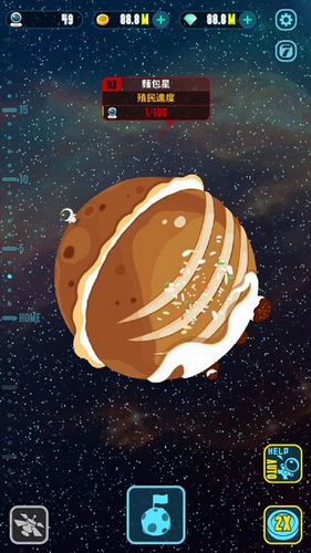2、行星可以被殖民,这样你就可以在它们上面建造火箭,探索更远的地方。