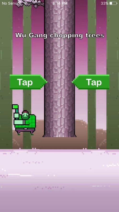 吴刚被罚砍了一棵树。点击屏幕的左边或右边来砍树。触摸树枝将结束游戏。在没有及时砍树的情况下结束游戏。你能砍多少棵树?