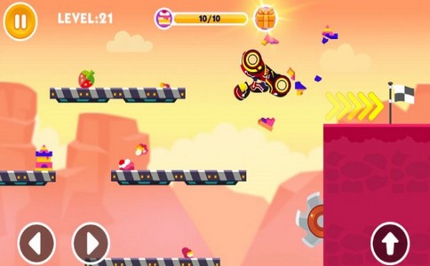 1、休闲趣味横版游戏风格特色,多种赛车道具助阵,避免所有怪兽阻挡;