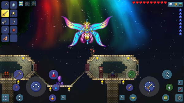 泰拉瑞亚1.4.4.9汉化版下载整个游戏世界都是可破坏的,破坏某些障碍物后,就可以找到各种资源比如石头、木材、铁矿或者其他装备,当然,在不断深入的同时,也会遇到各种怪物。把玩家扔进了一个完全随机生成的像素世界中,手头的工具意味着玩家需要造东西、探索世界并打败怪物。游戏的主要任务就是让玩家利用各种资源按自己的想法创造出各种稀奇古怪的东西,所以这就让玩家充满了探索的动力。